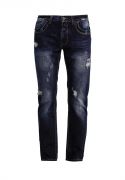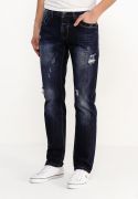 Джинсы из хлопкового денима с искусственными потертостями, эффектом состаренности и декоративными каплями краски от Justing. Детали: зауженный крой, застежка на пуговицы, шлевки под ремень, пять карманов.