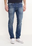 Джинсы из хлопкового денима с искусственными потертостями, эффектом состаренности и декоративными каплями краски от Justing. Детали: зауженный крой, застежка на пуговицы, шлевки под ремень, пять карманов.