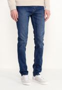 Джинсы из хлопкового денима с искусственными потертостями, эффектом состаренности и декоративными каплями краски от Justing. Детали: зауженный крой, застежка на пуговицы, шлевки под ремень, пять карманов.