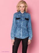 Никогда не выйдет из моды джинсовая рубашка с застежкой на кнопки. Модель приталенного кроя с отложным воротником. Спинка и полочки на кокетках. На груди накладные карманы с клапанами. Застежка супатная.